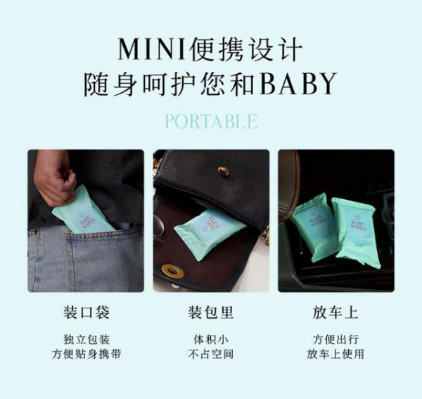 另外,考虑到爸爸妈妈们带宝宝出行的实际需要,还特别推出了婴儿手口湿巾的mini款,精巧便携,无论是放进妈咪包还是小口袋,都可以随手取用,出门在外的宝宝们那玩脏的小手、和辅食弄得黏糊糊的小嘴巴,用手口湿巾一抹即净,无论去哪儿带娃都轻松。