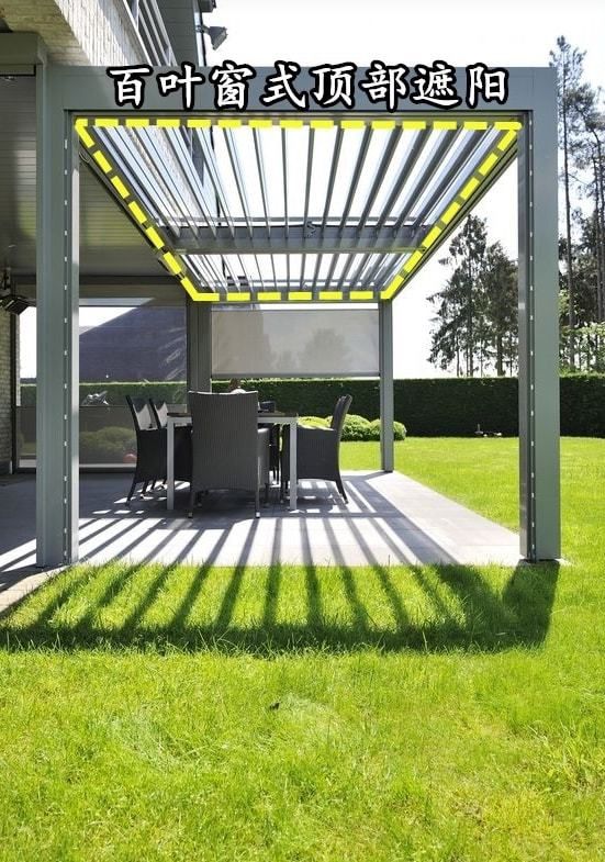 下面就来简单介绍一下,这种百叶窗式顶部遮阳,到底有哪些优势,我相信,你看完之后,有院子要装修,也会考虑这种方式的。