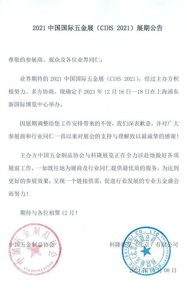 网址:2021中国国际五金展(CIHS 2021)展期公告 https://www.jiaju82.com/news-view-id-773580.html