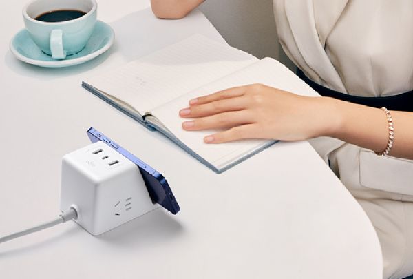 但如果选择的是多功能无线充电插座,那么,就可以最大限度的解决桌面凌乱不堪的问题。以aigo多功能无线充插座M0230T为例,它就采用了四方方立体式设计,2个国标组合孔,位于左右两侧,防止了因插头过大插孔被占用的情况发生。