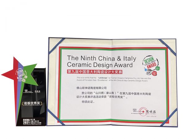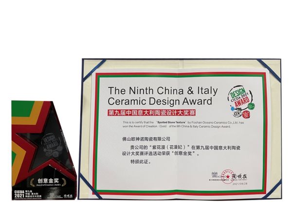 双项殊荣 | 第9届中意陶瓷设计大奖赛:欧神诺瓷砖斩获产品创意金奖、岩板优秀奖!