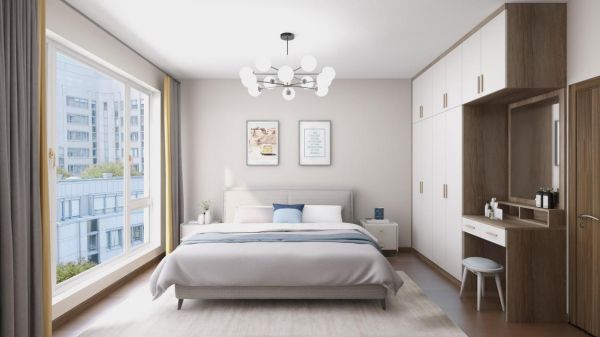 还可以将衣柜和梳妆台连为一体,既保证了卧室风格的整体感,又能节省不少空间,留出更多的区域,方便人自由活动。