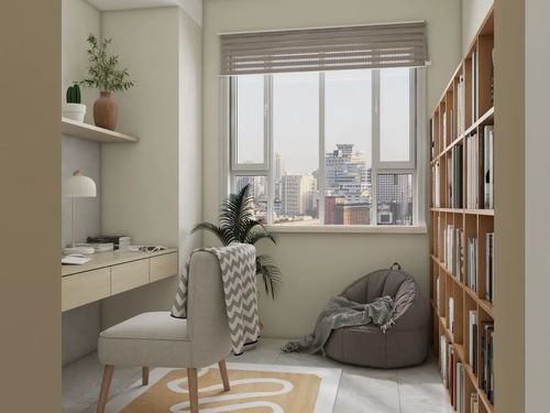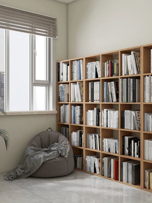 她的书房布置的很简单,一面大大的书柜,一张长长的书桌,为了让空间更有层次感,在书桌上方装了长的置物架,放上一些小摆件,给空间增加灵动性,桌面摆放书本+电脑+台灯+置物架,书房是她快乐的源泉,简单归置能让她创作时更专注。写得累了,她也常常坐在窗户旁的软沙发上,抬起头看看窗外,回血也会快一点吧。而且在这里看书就像置身于图书馆中。