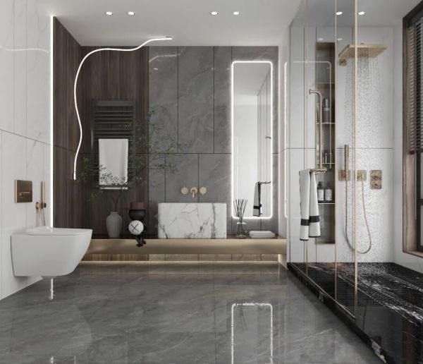 750*1500mm黄金比例,两片刚好到顶,不需切割,融合雅致灰调色度,于低调中见不俗品味,细密交错的纹理,勾勒出峰峦叠嶂的万千气象,于无声中吐露盎然意趣。