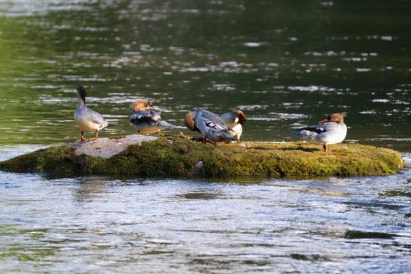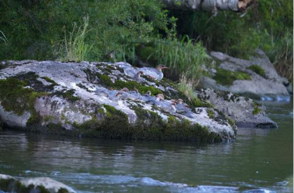 中华秋沙鸭的栖息地域,与水息息相关。它喜欢清澈的水道,主要栖息于阔叶林或针阔混交林的溪流、河谷、草甸、水塘以及草地。它外表萌态可掬,其头上长着冠羽,两胁覆盖鳞片状花纹羽毛,嘴和腿脚为红色。嘴型侧扁,前端尖出,以鱼为主要食物,是第三纪冰川期后残存下来的物种,距今已有一千多万年,为国家一级重点保护动物,也是国际自然保护联盟(IUCN)红色名录濒危物种。目前全球种群数量不足5000只,以长白山为代表的中国东北和俄罗斯远东地区是它主要的繁育地,每年在长白山繁育的数量约190对。