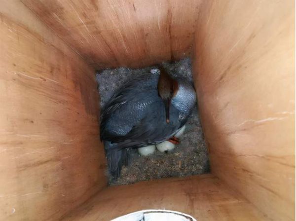 目前由于大径级老龄树的采伐以及自然死亡,使河流两岸缺乏可供中华秋沙鸭营巢的天然树洞,而中华秋沙鸭繁殖具有专营树洞巢的习性,严重缺少适宜营巢条件,直接影响到中华秋沙鸭等鸟类种群繁殖和种群数量的稳定性。同时,中华秋沙鸭孵化期间,貂、蛇和大型猛禽会对巢内的卵或雌性成体构成一定威胁,这些问题都会威胁到中华秋沙鸭栖息繁衍。