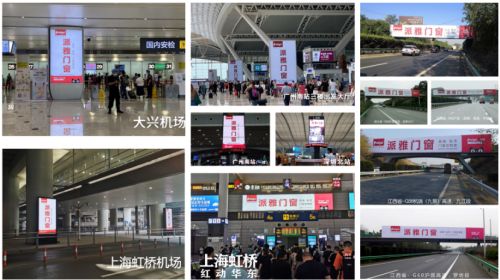 市场竞争愈激烈,品牌推广愈要持续。派雅门窗广告累计覆盖全国31个省(直辖市)600余座城市的高速公路主干道,13座核心城市的航空机场候机楼,28个纵横枢纽的高铁站,以及全网主流的媒体平台,真正做到了品牌海陆空全域触达受众。