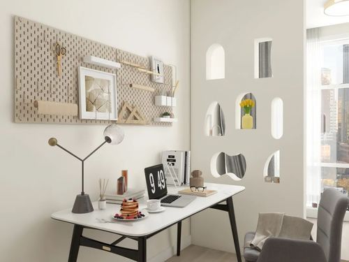 旁边是Jessica的工作室,是她最常呆的地方。平时会在桌上电脑办公、视频剪辑或是修图。阳台区是平日拍摄的主要场地,穿着最时髦的裙子,提着手袋对镜摆造型自拍,是她的日常工作之一。