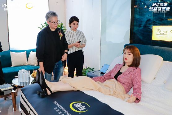 (上图为洪欣在山西太原体验舒达iComfort智能床)