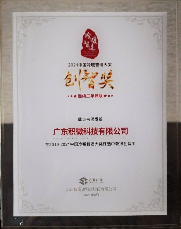 “智”创未来 | 积微GCHV荣获2021中国“冷暖智造∙创智奖”