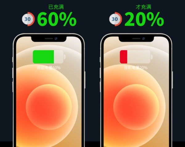 接下来就说说大家最关心的充电速度吧,aigo充电器20W快充版 AU1020充电前30分钟可充电约60%,而苹果原装5w充电器充电前30分钟可充电约20%。相比于苹果原装充电器的速度提升了整整3倍。