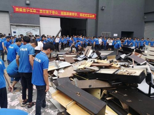 2019年8月3日,刘波组织库斯全体员工,在厂内进行了品质见证销毁活动,现场砸掉了近期所有不合格的产品和客户返厂的产品,再次坚定表明企业对于产品品质的态度,并将以后每月的3日设立为“质量日”,结合质量标准化要求,扎实开展质量管理体系。