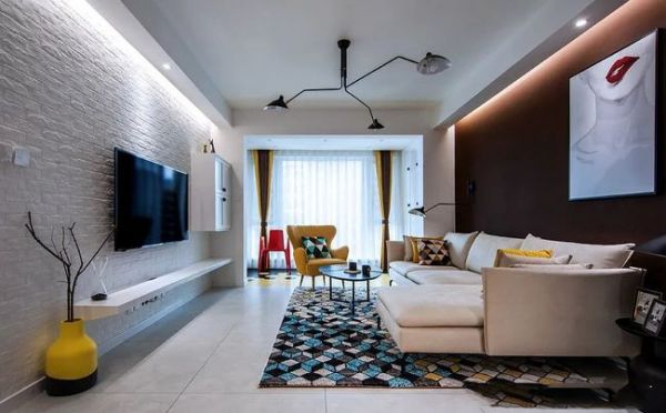 电视背景墙做了文化砖的设计,而沙发背景墙则是做了乳胶漆装饰,装饰画作为背景装饰,更加的大气和好看,有没有发现我家的灯饰都是做的隐藏灯,这样的设计晚上看起来就会更漂亮了。