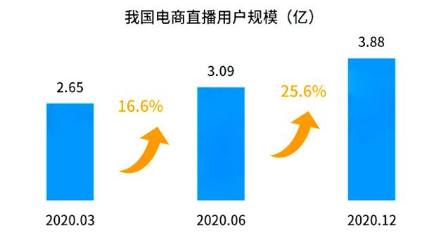 中国互联网络信息中心的数据显示:我国直播电商的用户规模已经达到3.88亿(截止到2020年12月);直播电商交易规模达到1.92万亿(截止到2021年第一季度)。在直播电商这个赛道,大量商家开始涌入,竞争已趋白热化。