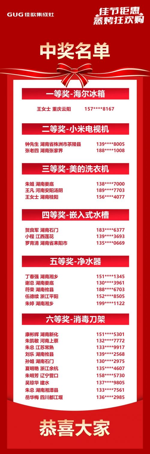 以公平、公正、公开为原则,后台工作人员将全部参与人员信息输入抽奖系统,直播间现场随机抽取幸运用户。获奖名单如下: