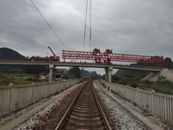 10月12日,在焦柳铁路上跨铁路公路桥施工现场,随着最后一片箱梁安稳落位,柳州市又一条跨铁公路便民通道顺利完成铺架。