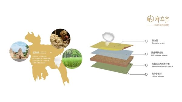 麻立方黄麻纤维快装墙咔,臻选“黄金纤维之乡”孟加拉上品黄麻纤维,历经:开松——梳理——铺网——针刺——成毡,进入意大利进口自动化生产线,一次性热塑复合成板。全流程无胶水添加,0 甲醛更安全环保,难怪会得到高端汽车、概念车甚至飞机的青睐。