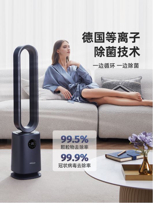 科学实验证明,SoleusAir舒乐氏无叶风扇捕捉空气中的甲醛、细菌、病毒、粉尘、花粉等有害物质,释放低温正负离子在空气之中主动捕捉病毒等物质并进行消杀,可达到99.99%高效除菌,从源头把控洁净健康的空气。