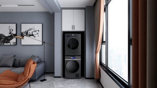 1.在阳台设置洗衣机+烘干机组合;现在很多人喜欢在阳台放洗衣机,那不妨再放上一个烘干机,烘干机自带烘干、抗皱、杀菌、消毒等功能,洗完衣服直接烘干,不受天气影响,方便省心;