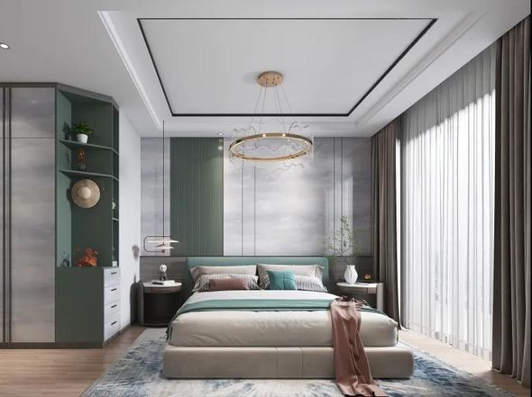 说到色系,“醉曲风荷”系列以高光饰面的西湖花色+科技木洛萨灰影为基底,融入莫兰迪色系的水碧山青、莫兰迪粉,几种色调就已经有了国风的韵味,尤其近来受到年轻人热捧的莫兰迪色系,更是在这其中添加了几分历史的厚重感,却也不会厚重的令人喘不过气,尤其配上金属质感的装饰,几者交相辉映,跳脱华丽的外观,又添上越看越有深度的气质,从而调和出调和出柔中带刚、老少皆喜的空间。