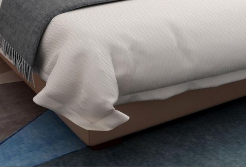 这张东宝软床的靠包用的是真皮材质,摸上去非常柔滑、很细腻、有质感,提升了整张床的档次。当你靠在上面的时候,会感觉清凉透气,有头等舱的舒适感。