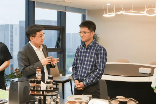 在参观完田螺云厨内容研究院后,陈健副区长与方志华董事长一起到会议室就未来企业发展服务与在未来社区建立共享厨房所需扶持帮助等问题展开讨论。在座谈交流中,方志华董事长向陈健副区长一行人介绍了企业的发展战略、主要产品、经营业绩以及未来的发展规划。陈健副区长表示,“围着企业转”是杭州高新区(滨江)历来的优良传统。“主动报到,说到做到,服务周到”,“三到暖心”是滨江区营商环境的具体体现。田螺云厨正是政府想要帮助且必须帮助的典范企业之一。