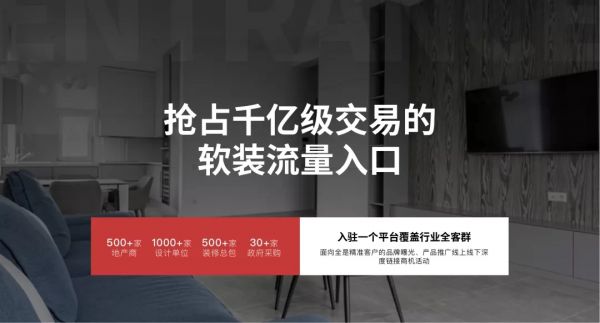 精准曝光:凭借平台千亿级整装交易的采购流量,供应商可面向全行业内精准客户的品牌曝光、零距离推广,能快速链接全国各地软装业务、人脉资源。