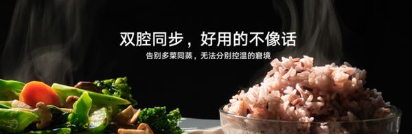 另外的这一款双蒸一烤A900ZK2,虽然他们腔体位置布局相似,左边同样是30L蒸烤一体小箱。但他右边配备的是50L大蒸箱,能够使用双腔同步蒸,告别多菜同蒸的窘境,充分照顾到不同食材对于温度和时间的不同需求,同时也更加契合中国人健康饮食文化,让蒸烤容量更加合理。