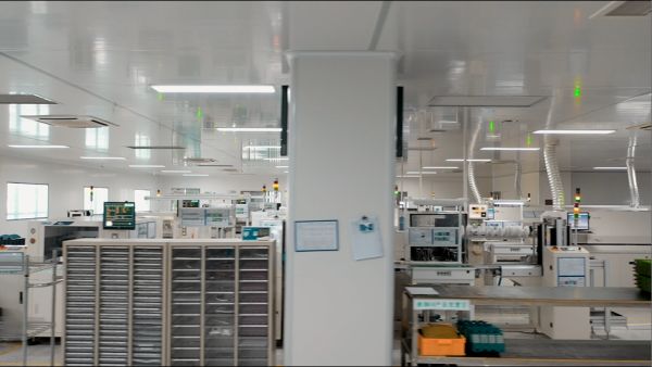 四楼是VOC的SMT贴片车间。这是VOC投了3000多万引进的先进无人车间,里面所有的工作,从前端物料到贴片全部由机器人完成,效率非常高,也是人们常说的“黑灯工厂”。