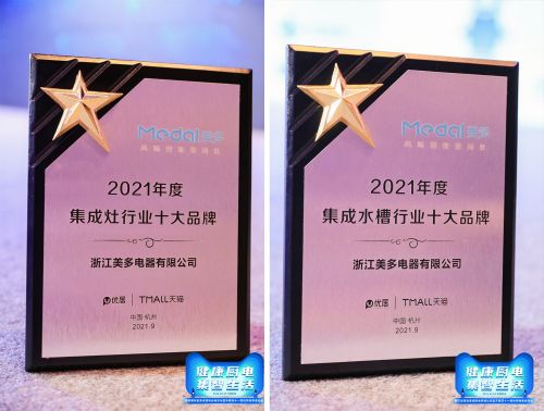 由中国五金制品协会指导,优居研究院携手天猫、中怡康共同主办健康厨电·集智生活——第四届智能集成厨电高峰论坛暨天猫双十一厨热购物季启动会在杭州盛大启幕。美多应邀出席共同探讨行业大势,凭借出色的产品斩获了由腾讯家居.优居颁发的“2021年度集成灶行业十大品牌”与“2021年度集成水槽行业十大品牌”两项行业大奖。