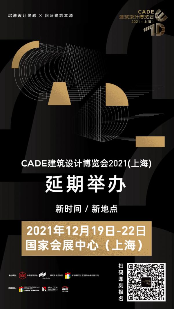 根据上海市最新防疫防控及对大型公共活动的管控要求,原定于11.2-5日在上海新国际博览中心举办的CADE建筑设计博览会2021(上海)将延期举办!