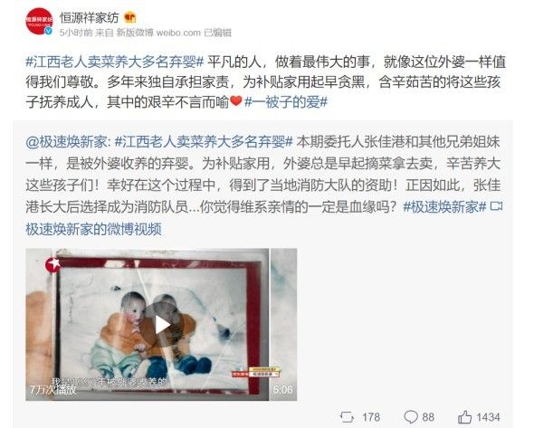 近日,恒源祥联系了《极速焕新家》中已经改造过的家庭,开展了一次公益行动,把软软的被子送到了这些有爱的家庭。恒源祥的这起爱心公益行动,再次得到了社会的关注,这份有温暖有态度的公益,让大家在这个入秋的季节心中多了一份暖意。
