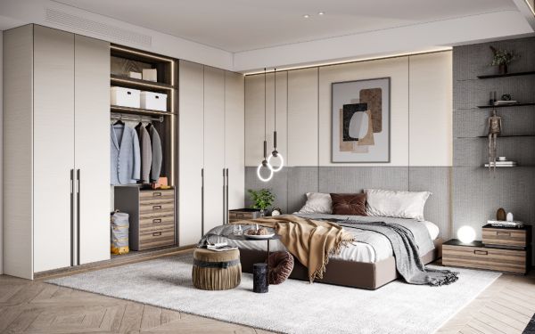 卧室是我们日常休息睡觉的场所,它的氛围决定了所有人晚上的睡眠质量和白天的精神状态,而配色无疑是氛围最重要的组成部分之一。欧派全屋定制在卧室配色上依据具体的房型而定,并且针对不同卧室的不同朝向有不同的配色方案,将卧室采光与色调定制结合起来,例如朝南的卧室光照充足,采光较佳,在色调选择上可以选择冷色调或中色调,中和采光,提升视觉体验。反之,采光不好的卧室则可以选用暖色调来进行视觉调节,让空间看起来温暖明亮。
