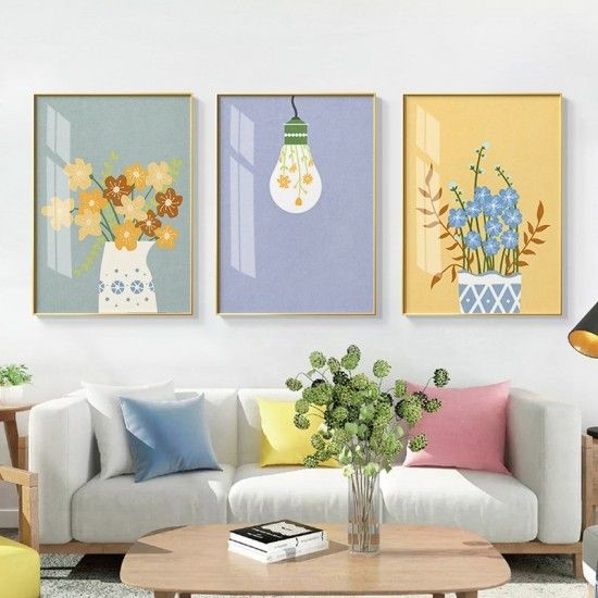 北欧风营造的是一种清新淡雅,有些自然田园气息,又有些浪漫的柔和感。所有的色彩、灯光、家具的搭配都会为了营造一些放松的感觉,所以北欧中会有很多色彩艳丽的装饰,在家居装饰画的选择上,北欧风的装饰画会有绿色的植物、可爱的动物,粉色的格调等等,营造一种自然温暖的感觉。