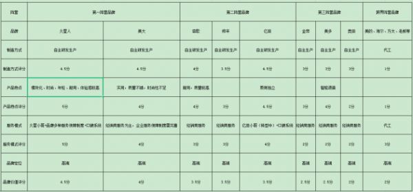 但是我知道,很多人肯定不乐意看这么多字,所以我再做张品牌表格来直观展示一下吧,
