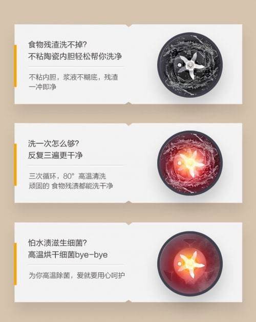 你也可以前一天晚上睡觉前就预约好,早上起来就能直接喝,不急不赶。更贴心的是,机器做完豆浆之后就会自动进行清洗,而且不止洗一次,整整三次循环高温洗,先是全方位高压冲洗杯体,再采用80度高温清洗,最后再高温冲洗,比手洗更干净。它不仅能自己洗得超干净,还会顺便烘干杀菌,懒人福音就是它了!