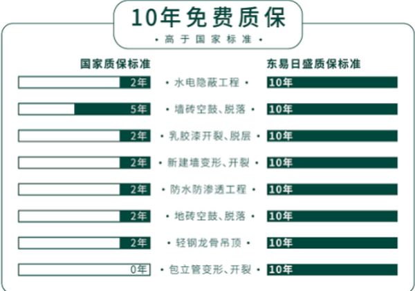 房子装修完毕之后,东易日盛三好整装采用环保材料保证客户房屋空间环保健康,并保证客户10年免费质保及7零承诺(零增项、零偷工、零减料、零遮掩、零延迟、零担忧、零超标),让客户在入住新家后放心无忧。