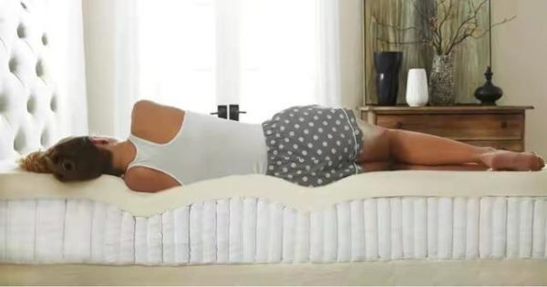 人睡在弹簧床垫上,床垫会随着人的身体曲线凹进去,腰部弹簧硬一点,臀部弹簧软一点。
