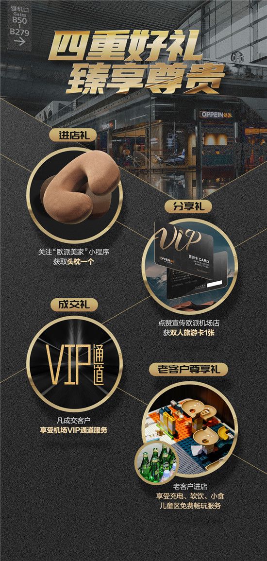 “在机场中心为你安一个家”,为消费者创造生活和审美价值,从而引领消费者开启场景共创的家居生活美学体验之旅。欧派的雄心绝不止步于此,未来,欧派将以广州白云机场为起点,在全球旅游交通枢纽和重要城市线下黄金渠道布局,为数亿精准旅客和高端消费者提供全球高端家居产品的线下体验和购买,将更高端的中国制造推向世界舞台,加速中国家居行业走向国际化道路的步伐。