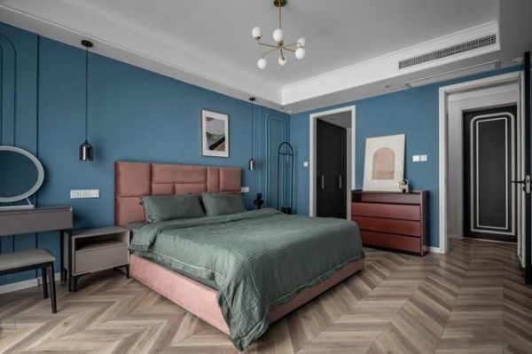 卧室是属于个性化的私密空间,灰蓝色和充满青春活力的裸粉色,呈现出温柔和知性。卧室中最真实的柔软和可爱在这舒缓的色调中慢慢被察觉。