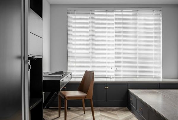 书房中鱼骨拼、百叶窗和金属元素的加入,是现代黑的书房褪去了让人压抑和不安的印象,成为时尚精致的代表。