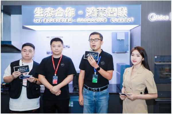 注:华为消费者业务 AI与智慧全场景业务部副总裁杨海松在美的智能家居展区介绍鸿蒙智联产品体验