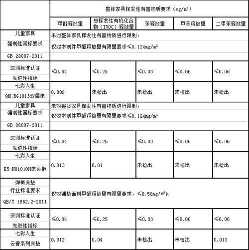附表为七彩人生获认儿童家具产品环保性能优越性对比