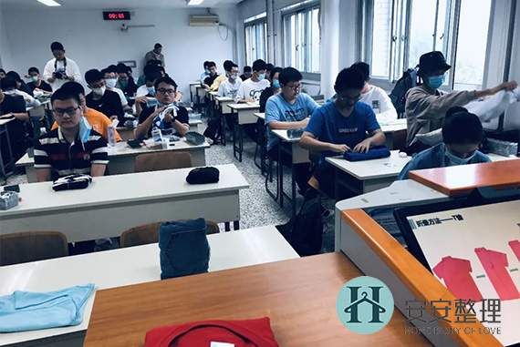 此次安安整理受邀的高校为理工学校,新生大多为男生。虽然初入校园的他们稚气尚未褪去,但他们的动手能力却都很强。在安安实训讲师的展示下,他们纷纷开始行动,有的人动作十分干练,三下五除二就能将手中的衣服叠的整整齐齐;有的人埋头整理,脑门上都沁出了一层细细的汗,全然沉浸在收纳的快乐之中......待到完成之后,这些青春洋溢的孩子们,纷纷开始攀比谁叠的更好,所有人都津津乐道的沉浸在收纳整理的世界中。