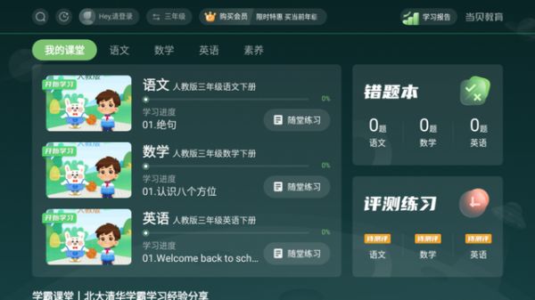 家庭教育中家长其实还可尝试“客厅教育”,随着智能电视的不断普及、AI技术的成熟、尤其是5G商用的落地,电视端作为受益者之一,家庭客厅场景也将被重构。大屏在教育学习方面是有很大的优势存在的,像是大屏的沉浸感很强,学习体验比小屏和中屏更好;二是对于低龄用户来说,学习过程是完全透明化的,便于家长监控;三是涉及家庭教育的内容可以实现家长和孩子共同完成。例如“当贝教育”将教育部教材全部纳入应用,梳理教学点,匹配课本章节,与教材同步构建完整的课程教学体系。通过浸入式、全动画教学(低学龄),真人高校教师讲解(高年级)使整个学习过程更富有趣味性、情景化。基于对教育环节的深度理解,对知识脉络的梳理,打破传统的学习顺序,让学生能够对知识查漏补缺,完善学科知识体系。能实时通过电视复习、做作业(巩固)、 预习 、 总结与规划。