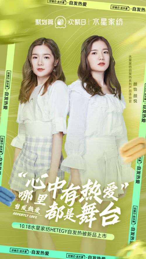 基于此,10月18日水星家纺联合聚划算欢聚日,以“自发热爱”为主题,邀请孙俪、黄圣依、钟丽缇、颜怡颜悦、张晨光等人气明星倡导坚持心中的热爱,点燃年轻人的热爱,并将“热爱”基因延续在水星新品黑科技HETEGY自发热被中。以热爱推动营销创新,实现品牌与年轻消费者共振,为热爱加火力!
