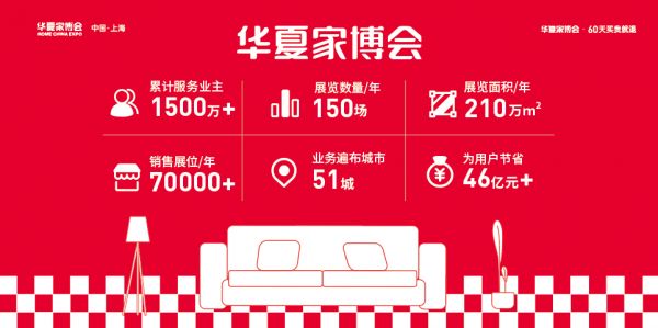 2009年华夏家博从上海启程,到北京、广州、武汉、天津、重庆、郑州、青岛.....12年,390多场家博会,3000家国内外一线大牌,累计服务1350万+用户,SVIP用户超150万人次,展出面积超过1100万平,平台交易额突破490亿。今天的华夏家博会,已成为众多家装消费者装修采购的主流选择。