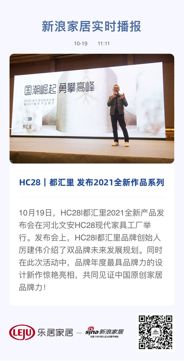 10月19日,HC28|都汇里2021全新产品发布会在河北文安HC28现代家具工厂举行。发布会上,HC28|都汇里品牌创始人厉建伟介绍了双品牌未来发展规划。同时在此次活动中,品牌年度最具品牌力的设计新作惊艳亮相,共同见证中国原创家居品牌力!