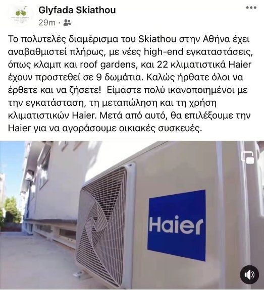 当地时间10月14日,雅典诗格雅松公寓分享了一段视频,记录了公寓负责人从选择、购买到安装海尔空调的全过程,并为海尔空调带来的舒适健康的空气体验点赞。