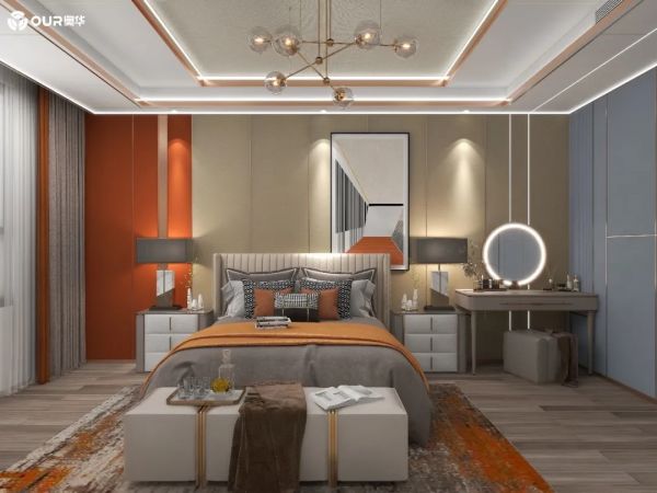 于是,奥华家装设计师引景入室,造就生机盎然的生活氛围。采用奥华珍珠缎纹、凡尔赛宫、尼罗浅蓝、海棠蜜橘等产品,为居者遇见更多彩的生活埋下伏笔。